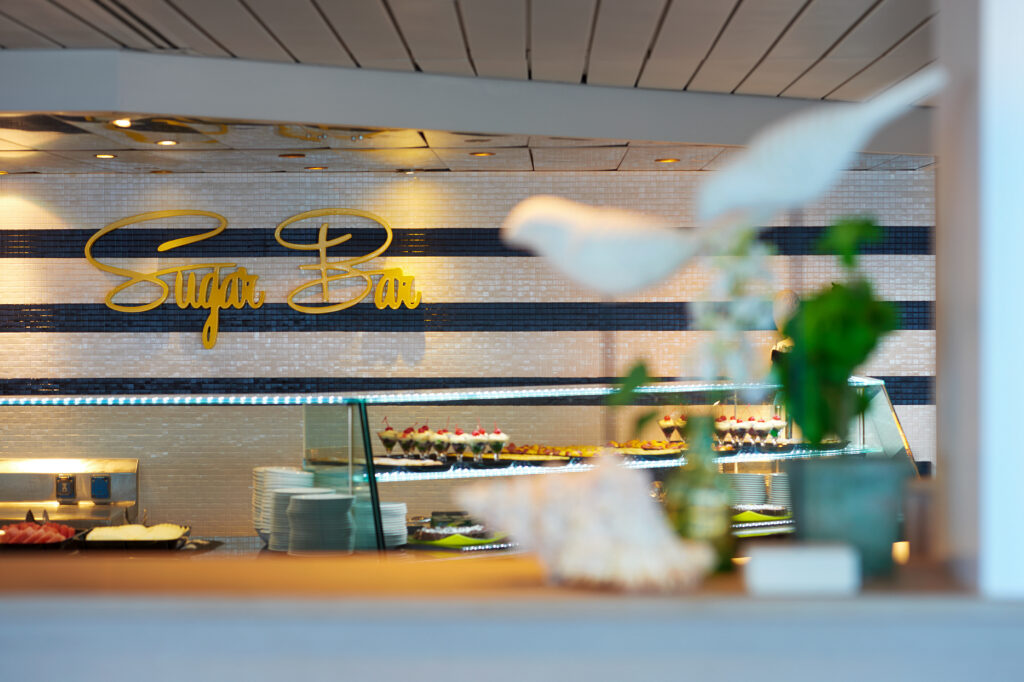 Auch gastronomisch spielt die Vasco da Gama in der Oberliga. Sie verfügt über drei a-la-Card Restaurants, unter denen das asiatisch ausgelegte „Fusion“ mit besonderer Liebe zum Detail überzeugt. Dazu gehören auch stilechte japanische Tische auf Bodenhöhe. Aber auch das Buffet-Restaurant sticht konzeptionell hervor. Es erinnert eher an einen Food-Court mit unterschiedlichen kulinarischen Stationen. Im „Waterfront“ mit seinen 150 Plätzen werden europäische Speisen serviert. Das Restaurant ist in einem exklusiven Style designt. „The Grill’’ ist das Spezialitäten-Restaurant an Bord und hat 66 Plätze. Der ,,Chefs Table’’ mit seinen 14 Plätzen ist gegen Aufpreis für eine größere Gruppe zu feierlichen Anlässen, wie z.B. Hochzeit, Silberhochzeit, Geburtstage usw., buchbar. Der Alfresco Grill ist das Bistro für zwischendurch, wenn man von einem Ausflug zurückkommt oder einem am Pool der Appetit überfällt. Die Pizzen, Burger oder Hotdogs sind alle im Reisepreis enthalten.